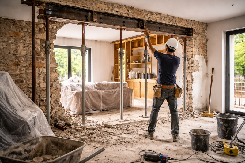 Si votre projet nécessite la création d’une ouverture dans un mur porteur, nous pouvons organiser une visite technique afin d’évaluer la configuration de votre maison et de préparer les travaux nécessaires au renforcement de la structure d’un bâtiment, dans le cadre de projets de maçonnerie et de rénovation.